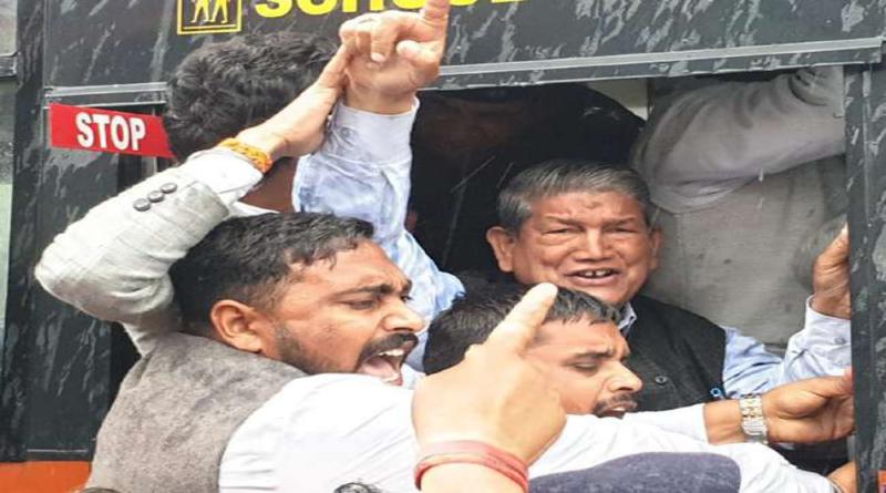 हल्द्वानी: प्रधानमंत्री नरेन्द्र मोदी का विरोध करने रुद्रपुर जा रहे पूर्व मुख्यमंत्री व कांग्रेस के राष्ट्रीय महासचिव हरीश रावत और नेता प्रतिपक्ष इंदिरा हृदयेश समेत सैकड़ों कार्यकर्ताओं को प्रशासन ने गिरफ्तार कर लिया है। गिरफ्तार पूर्व मुख्यमंत्री हरीश रावत ने बस के अंदर से ही काली जैकेट लहराई और कहा कि चौकीदार चोर है। हल्द्वानी से नेता प्रतिपक्ष इंदिरा हृदयेश के नेतृत्व में कई पदाधिकारी और कार्यकर्ता नारेबाजी करते हुए रुद्रपुर के लिए रवाना हुए थे।
