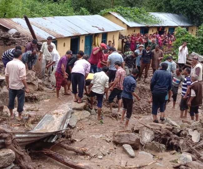 ने से भारी तबाही मच गई। गांव में भारी मात्रा में मलबा आ गया है। मलबे में फल्दिया गांव की दो महिलाओं के दबने की सूचना है। यहां बादलों ने ऐसी तबाही मचाई है कि गांव में 11 मकान बह गए हैं। गाय, भैंस सहित खाने-पीने का सामान भी बह गया है।बिजली गुल, पानी फल्दिया गांव में बिजली गुल है। पानी की लाइन टूट गई है। पूरे गांव में हाहाकार मचा है। लोग अभी भी खौफ के साए में है। वह अपने घरों पर टूटी तबाही देखकर इधर-उधर भटक रहे हैं।पुलिस और एसडीएम केएस नेगी सहित पूरी प्रशासन की टीम मौके पर पहुंच गई है। इसके अलावा देवाल क्षेत्र की सभी सड़कें बंद हो गई हैं। सिर्फ देवाल-थराली मोटर मार्ग खुला है। तलौर, बमण, बेरा, पदमल्ला आदि गांवों में भी भारी तबाही की सूचना है। दूसरी ओर टिहरी जिले के घनसाली में भी बादलों ने कोहराम मचा दिया। यहां घनसाली पट्टी नैलचामी के धार गांव थाती में गुरुवार देर रात करीब एक बजे भारी अतिवृष्टि हुई। जिसमें एक महिला और एक बच्चे की मौत हो गई है। एक व्यक्ति लापता है और दो लोग घायल हुए हैं।घटना की सूचना पाकर तहसीलदार मौके पर पहुंच गए हैं। बताया गया कि शंकर सिंह के घर के ऊपर सोड़ तोक में बादलों ने कहर बरपाया। शंकर सिंह, उनकी पत्नी बचन देई, कुमारी सपना और कुमारी ईशा को मलबे से ग्रमीणों ने निकाल लिया है। मकानी देवी और उनके पाचं साल के बेटे सुरजीत की मौत हो गई है। यहां कई बीघा खेत एवं मवेशी बह गए हैं।स्वास्थ्य विभाग की टीम मौके पर पहुंच गई है। यहां एक बालिका गंभीर रूप से घायल हो गई है। जिसे हायर सेंटर रेफर किया गया है। अगस्त्यमुनि में भी मूसलाधार बारिश का कहर देर रात को अगस्त्यमुनि में मूसलाधार बारिश हुई। जिससे कई दुकानों और घरों में मलबा घुस गया।