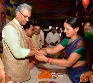 देहरादून, (UK Review)संवाददाता। मुख्यमंत्री त्रिवेन्द्र सिंह रावत ने मंगलवार को जोगीवाला स्थित वैडिंग प्वांइट में आयोजित रक्षाबन्धन समारोह में प्रतिभाग किया। इस अवसर पर बड़ी संख्या में उपस्थित महिलाओं ने मुख्यमंत्री की कलाई में रक्षा सूत्र बांधा। मुख्यमंत्री ने प्रदेशवासियों को रक्षाबन्धन व स्वतंत्रता दिवस की शुभकामनाएं देते हुए कहा कि यह संयोग है कि इस वर्ष रक्षाबन्धन का पावन पर्व व भारत का स्वतंत्रता दिवस एक ही दिन है। यह पवित्रता एवं संकल्प का त्योहार है।