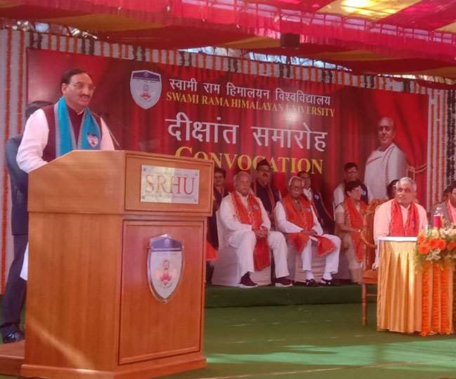 उन्होंने कहा इस शिक्षा नीति में संस्कारों के साथ ज्ञान, विज्ञान, तकनीकी का समावेश होगा। ज्ञान, विज्ञान, तकनीकी क्षेत्र में शिक्षा नीति शिखर को चूमेगी। केंद्रीय मंत्री ने कहा कि प्रधानमंत्री ने स्वस्थ स्वच्छ और श्रेष्ठ भारत के निर्माण का सपना देखा है। इस नई शिक्षा नीति में ऐसे भारत की आधारशिला रखी जाएगी। हिमालयन इंस्टीट्यूट हॉस्पिटल ट्रस्ट के संस्थापक ब्रह्मलीन संत डॉ स्वामी नाम को याद करते हुए उन्होंने कहा कि स्वामी राम ने सर्वे भवंतु सुखिनः की भावना के साथ मानवता के निरोग होने का संकल्प लिया था। उन्होंने योग को स्वास्थ्य से जोड़ते हुए विश्व को नया दर्शन दिया। इसी दर्शन पर इस संस्थान की स्थापना की गई थी। उन्होंने कहा कि उत्तराखंड ही नहीं, बल्कि समूचे देश में चिकित्सकों की कमी है। एसआरएचयू सहित कई विश्वविद्यालय धीरे-धीरे इस कमी को पूरा करेंगे। सरकार ने उत्तराखंड में हल्द्वानी और श्रीनगर में मेडिकल कॉलेज इसी मंशा के साथ खोला था कि गरीब बच्चा कम शुल्क में एक अच्छा डॉक्टर बनेगा। इस मकसद को लेकर सरकार काम कर रही है। उन्होंने कहा कि स्वामी राम हिमालयन विश्वविद्यालय शिक्षा चिकित्सा तकनीकी और प्रबंधन सभी क्षेत्र में नित्य नए आयाम प्रस्तुत कर रहा है। इस असवर पर विश्वविद्यालय के कुलपति डॉ विजय धस्माना, प्रदेश के उच्च शिक्षा मंत्री धन सिंह रावत, प्रमुख सचिव उच्च शिक्षा आनंद वर्धन, विश्वविद्यालय के प्रति कुलपति डॉ विजेंद्र चैहान, ऋषिकेश नगर निगम की महापौर अनीता ममगाईं भी मौजूद रहीं।स्वामी राम हिमालयन विश्वविद्यालय में इस वर्ष विशेष अवॉर्ड से सम्मानित एमबीबीएस के सर्वश्रेष्ठ स्नातक डॉ विवेक राजदेव और नरसिंह के सर्वश्रेष्ठ स्नातक के रूप में गरिमा को केंद्रीय मानव संसाधन विकास मंत्री रमेश पोखरियाल निशंक ने उपाधि प्रदान की।