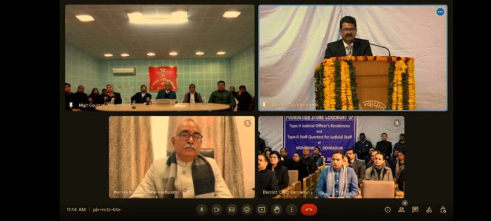 देहरादून। उच्च न्यायालय उत्तराखण्ड के अनुमोदन से मोहकमपुर, देहरादून में न्यायिक अधिकारियों हेतु 32 तथा न्यायालय के कर्मचारीगण हेतु 32 आवासीय यूनिट का निर्माण प्रस्तावित है। इस परिसर में पर्याप्त पार्किग क्षमता के साथ एक मल्टीपरपज हाल का निर्माण भी प्रस्तावित है। रविवार को देहरादून के मोहकमपुर में जिला न्यायालय के न्यायाधीश तथा कर्मचारियों के लिये नवीन आवासीय परिसर का शिलान्यास मुख्य अतिथि, कार्यवाहक मुख्य न्यायाधीश उच्च न्यायालय नैनीताल न्यायमूर्ति मनोज कुमार तिवारी द्वारा वर्चुअल माध्यम से किया गया। इससे पूर्व जिला न्यायाधीश प्रदीप पंत, जिला न्यायालय के अन्य न्यायिक अधिकारीगण तथा कार्यदायी संस्था एन० बी० सी० सी० के वरिष्ठ कार्यकारी निदेशक योगेश शर्मा द्वारा भूमि पूजन किया गया।