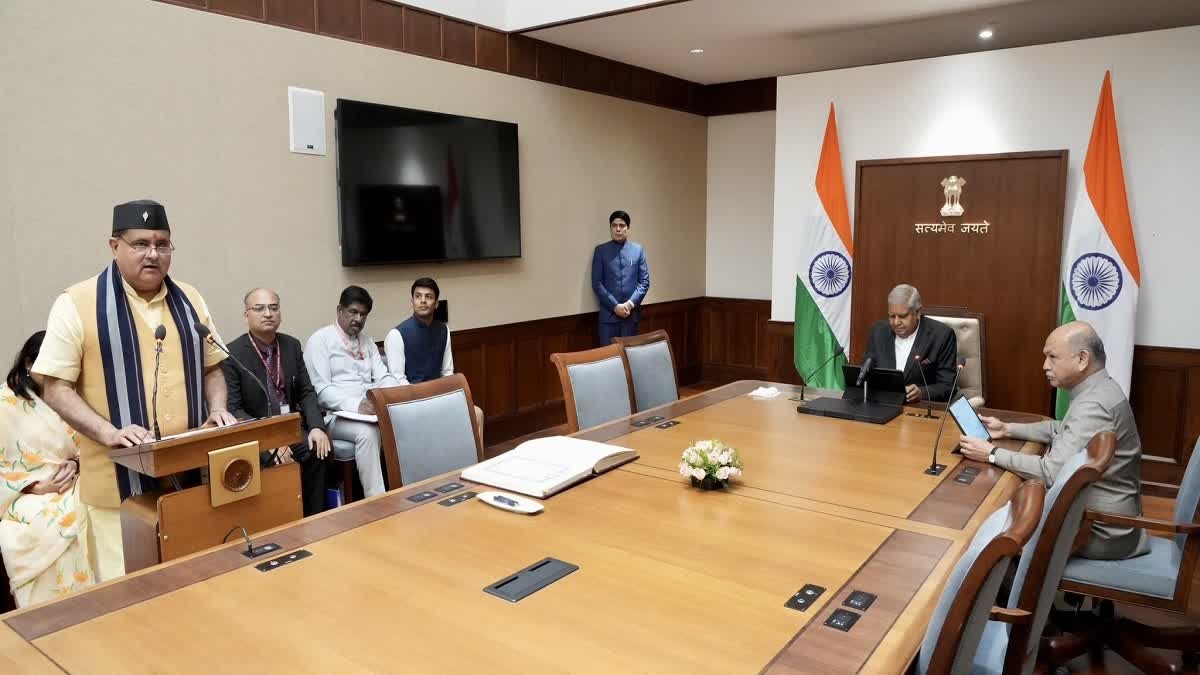 भाजपा प्रदेश अध्यक्ष महेंद्र भट्ट ने ली राज्यसभा सदस्य की शपथ, उपराष्ट्रपति ने दिलाई शपथ