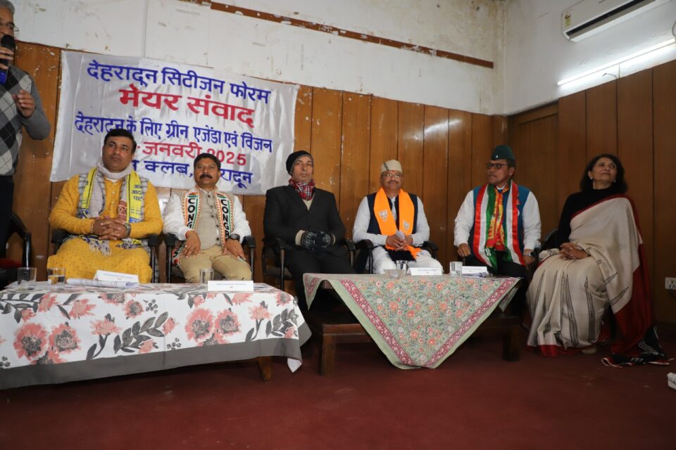 देहरादून। प्रदेश में इन दिनों निकाय चुनावों का महासमर चल रहा है। प्रदेश के सभी 11 नगर निगमों में सत्ताधारी दल भाजपा के साथ-साथ विपक्षी दल कांग्रेस, अन्य राजनैतिक दल और निर्दलीय प्रत्याशी भी चुनावी समर में अपनी ताकत झोंक रहे हैं। प्रदेश की नगर निगम की सबसे हॉट सीट यानी राजधानी देहरादून का मेयर चुनाव सबसे रोचक बन गया है, जहां भाजपा, कांग्रेस, आम आदमी पार्टी, और उत्तराखंड क्रांति दल के प्रत्याशियों के साथ-साथ कुल दस निर्दलीय प्रत्याशी भी मैदान में हैं। इसी क्रम में, देहरादून स्थित उत्तरांचल प्रेस क्लब में देहरादून सिटीजन्स फोरम द्वारा ष्देहरादून ग्रीन एजेंडाष् थीम पर मेयर संवाद कार्यक्रम का आयोजन किया गया, जिसमें शहर के विभिन्न वर्गों से भारी संख्या में नागरिकों ने भाग लिया। मेयर संवाद में बोलने वाले प्रत्याशियों का चयन पर्ची लाटरी द्वारा किया गया। सभी प्रतिभागियों ने देहरादून के इस किस्म के पहले आयोजन की सराहना की। मेयर प्रत्याशियों को अपनी बात रखने के निर्धारित 12 मिनट का समय दिया गया।