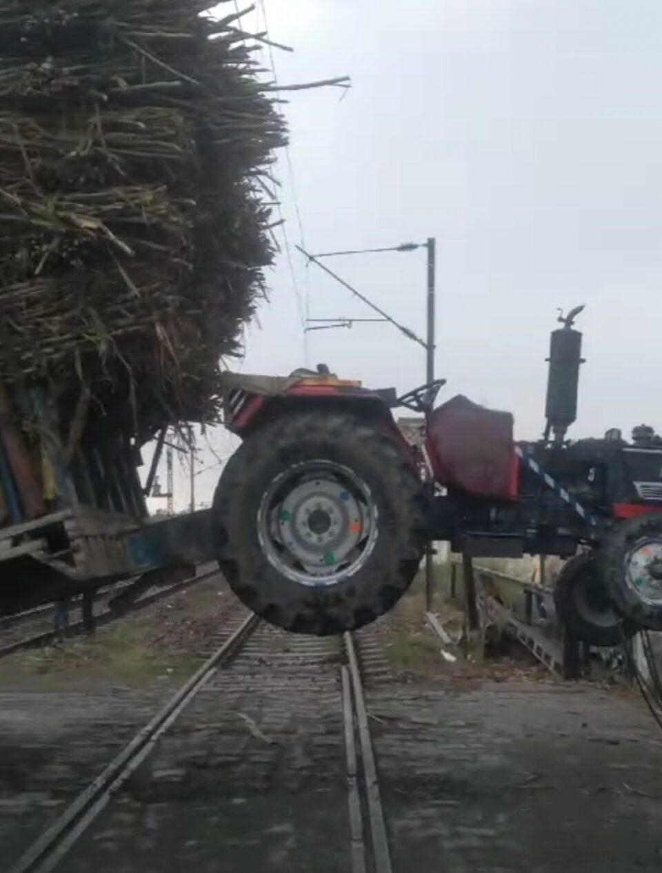 लक्सर। रेलवे फाटक पर उस समय अफरा-तफरी मच गई, जब एक गन्ने से लदी ट्रैक्टर ट्रॉली फाटक पर फंस गई। जिसकी वजह से एक घंटे से ज्यादा ट्रेन बाधित रही। मौके पर पहुंची आरपीएफ ने क्रेन की मदद से ट्रैक्टर ट्रॉली को हटाकर रेल यातायात को चालू किया। फाटक पर फंसी ट्रैक्टर ट्रॉली का वीडियो सोशल मीडिया पर भी वायरल हो गया। दरअसल ट्रैक्टर ट्रॉली गन्ने से लदी हुई थी। वीडियो देखकर साफ अंदाजा लगाया जा सकता है कि ओवरलोड होने के कारण ट्रॉली बैंलेस खो बैठी और पीछे की ओर झुक गई। ट्रैक्टर ट्रॉली का आधा हिस्सा फाटक के इस पार और आधा उस पार फंस गया। जिस कारण ट्रेन के मार्ग में बाधा उत्पन्न हो गई।
