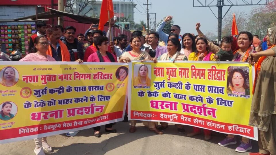 हरिद्वार। ज्वालापुर कोतवाली अंतर्गत आने वाले नेशनल हाईवे पर स्थित शराब के ठेके के खिलाफ स्थानीय निवासियों और भैरव सेना ने शराब के ठेके के सामने धरना-प्रदर्शन किया। प्रदर्शनकारियों ने ठेके को हटाकर कहीं और स्थानांतरित करने की मांग उठाई। ऐसा न होने पर प्रदर्शनकारियों ने उग्र आंदोलन करने की चेतावनी भी दी है।