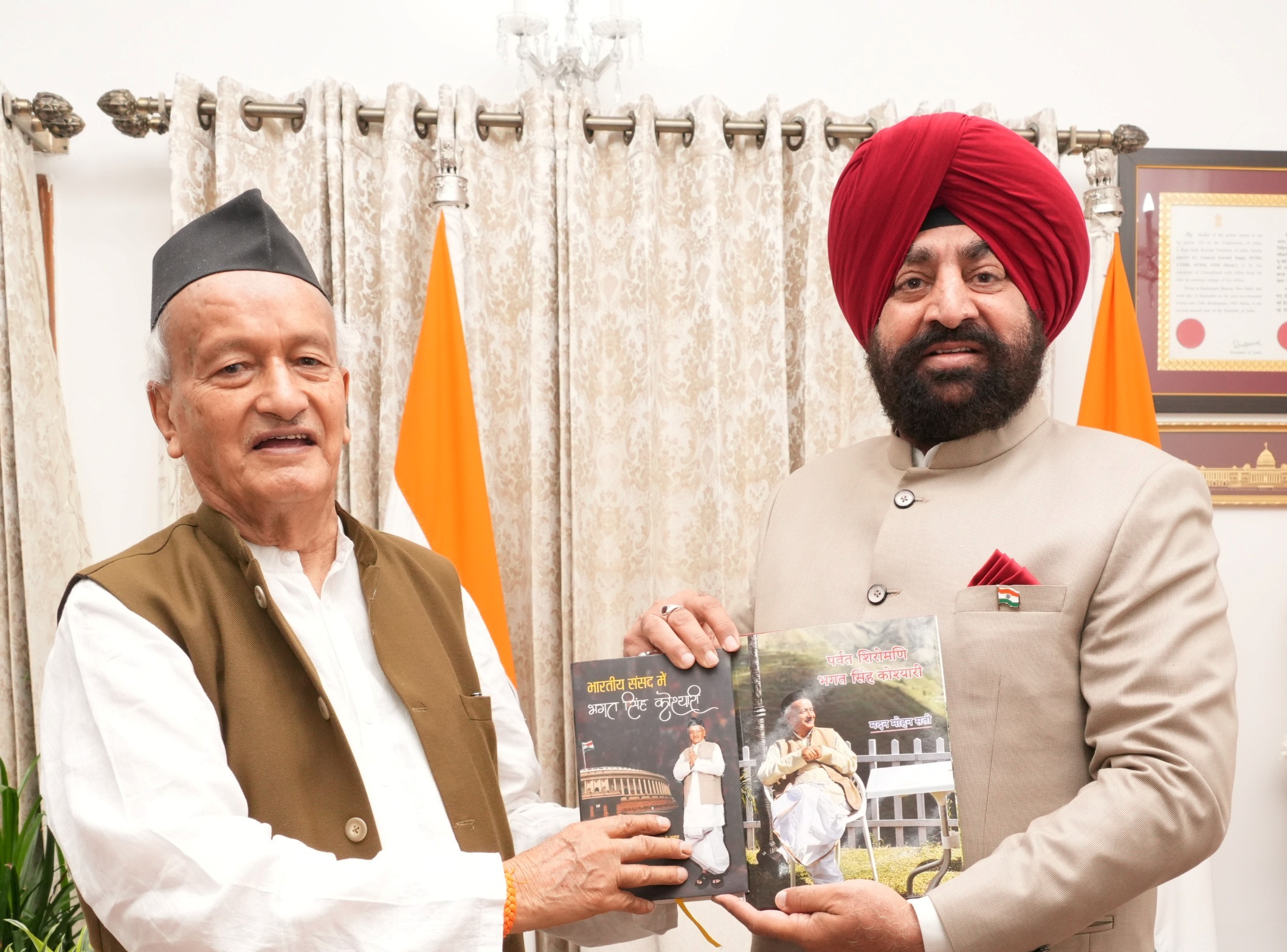 देहरादून। राज्यपाल लेफ्टिनेंट जनरल गुरमीत सिंह (से नि) से मंगलवार को राजभवन में उत्तराखण्ड के पूर्व मुख्यमंत्री और महाराष्ट्र के पूर्व राज्यपाल भगत सिंह कोश्यारी ने मुलाकात की। इस अवसर पर उन्होंने राज्यपाल को अपने जीवन वृत्त पर आधारित पुस्तक ‘पर्वत शिरोमणि भगत सिंह कोश्यारी’ भेंट की। राज्यपाल ने कहा कि साधारण पृष्ठभूमि से उठकर श्री कोश्यारी ने जिस संघर्ष, समर्पण और निष्ठा से जनसेवा की वह सभी के लिए प्रेरणा है। राज्यपाल ने कहा कि यह पुस्तक विद्यार्थियों, शिक्षाविदों और जनसेवा से जुड़े प्रत्येक व्यक्तियों के लिए प्रेरणास्रोत सिद्ध होगी।