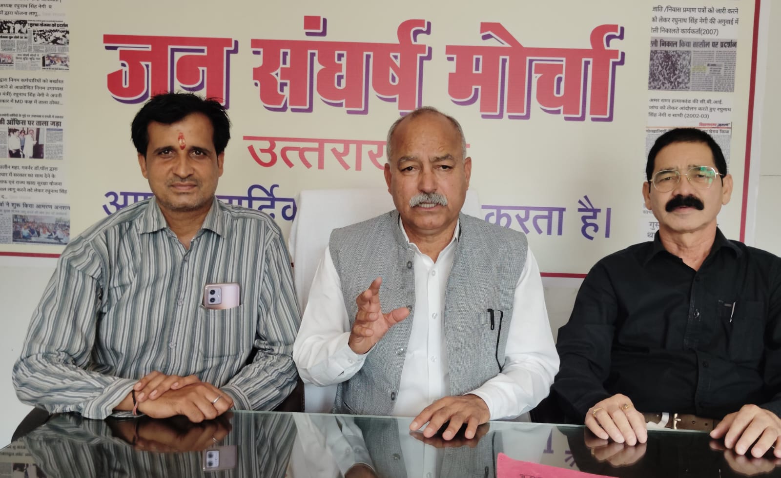 विकासनगर। जन संघर्ष मोर्चा अध्यक्ष एवं जीएमवीएन के पूर्व उपाध्यक्ष रघुनाथ सिंह नेगी ने पत्रकारों से वार्ता करते हुए कहा कि प्रदेश के गोल्डन कार्ड धारक कर्मचारी/अधिकारी अपना इलाज कराने के लिए दर-दर की ठोकरें खाने को मजबूर हैं, लेकिन सत्ता के नशे में चूर सरकार को इन कर्मचारियों की पीड़ा दिखाई/सुनाई नहीं देती द्यअधिकांश अस्पताल इन कार्डों पर इलाज करने से मना कर रहे हैं, क्योंकि सरकार अब तक इन अस्पतालों को भुगतान नही कर पायी। हर मोर्चे पर विफल सरकार को सिर्फ माफियाओं के हक-हकूकों की चिंता हैै। मोर्चा शीघ्र ही कर्मचारियों के हितों को लेकर आंदोलन करेगा। पत्रकार वार्ता में मोर्चा महासचिव आकाश पंवार व प्रवीण शर्मा पिन्नी मौजूद रहे।