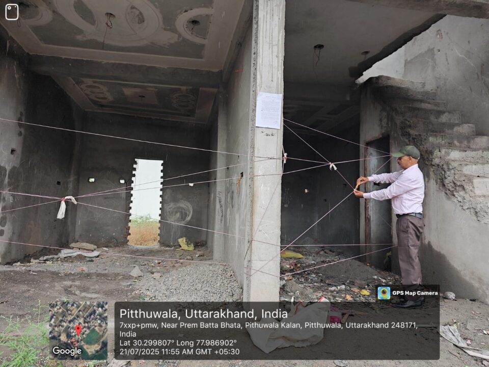 देहरादून। मसूरी देहरादून विकास प्राधिकरण क्षेत्रान्तर्गत पित्थूवाला व मसूरी में किये जा रहे अवैध निर्माणों के विरूद्ध एमडीडीए द्वारा सीलिंग की कार्यवाही की गयी। जहूर द्वारा पित्थूवाला देहरादून में अवैध रूप से किये जा रहे व्यवसायिक निर्माण को संयुक्त सचिव गौरव चटवाल के आदेशों पर सीलिंग की कार्यवाही की गयी। कार्यवाही में सहायक अभियन्ता विजय सिंह रावत अवर अभि0 जितेन्द्र सिंह सुपरवाईजर राकेश मौके पर मौजूद रहे। सुभम व दिवान सिंह आदि द्वारा मसूरी देहरादून मार्ग में किये जा रहे अवैध निर्माण पर सीलिंग की कार्यवाही करते हुये सील किया गया। उक्त कार्यवाही में अवर अभि0 अनुज पाण्डे, सुपरवाईजर मौजूद रहे।