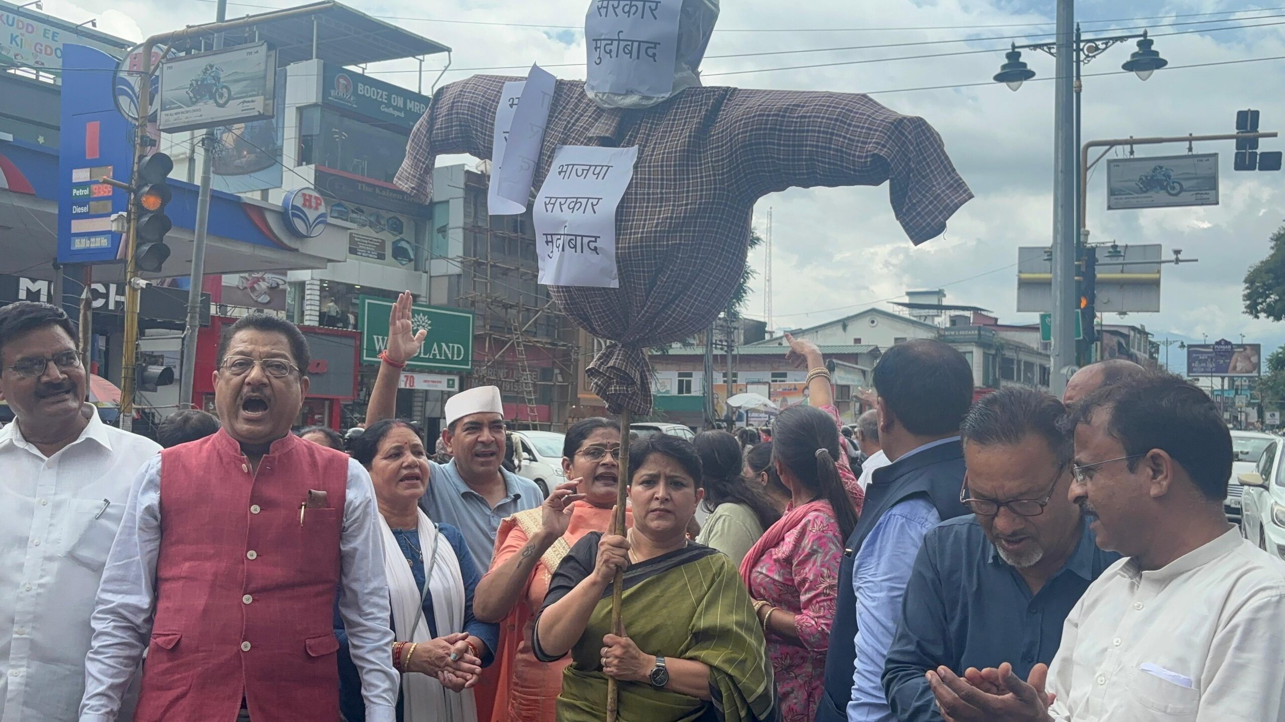 जिला मुख्यालयों पर कांग्रेस ने किया सरकार के खिलाफ प्रदर्शन, फूंका पुतला