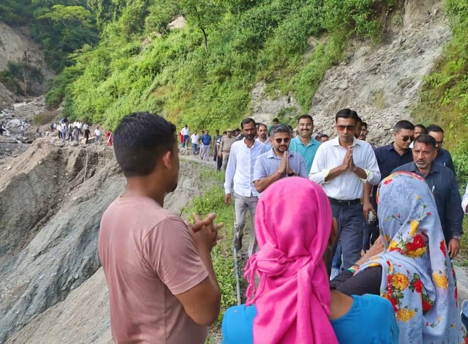 मजाड़ा, कार्लीगाड, फुलेत छमरोली के बाद गाढ, गदेरे, ढौंड-ढंगार लांघते हुए डीएम प्रशासनिक अमले संग पूर्ण रूप से कट ऑफ भितरली कंडरियाणा क्षेत्र में फिर हुए ऑन ग्राउण्ड ।देहरादून , जिलाधिकारी सविन बंसल आपदाग्रस्त क्षेत्र में भीतरली, कंडरियाना क्षेत्र में भ्रमण कर क्षेत्रवासियों की समस्या को सुना तथा अधिकारियों को युद्धस्तर पर कार्य करते हुए जनजीवन सामान्य बनाने के निर्देश दिए। इस दौरान जिलाधिकारी ने सम्बन्धित विभागों के अधिकारियों को निर्देश दिए कि बजट प्रतीक्षा ने करें सीधे युद्धस्तर पर कार्यवाही करते हुए जनजीवन सामान्य बनाने में जुट जाएं। उन्होंने निर्देश दिए कि खेत, खलियान, निजी भवन, ग्रामीण मार्ग, पुलिया, बिजली-पानी 02 दिन अन्तर्गत दुरूस्त हो जाना चाहिए। जिलाधिकारी ने वरिष्ठ अधिकारियों को क्षेत्र में ही कैम्प करने के निर्देश दिए हैं। मजाड़ा, कार्लीगाड, फुलेत छमरोली के बाद आपदा प्रभावित पूर्ण रूप से कट ऑफ भितरली कंडरियाणा क्षेत्र में फिर पूरा प्रशासनिक अमला ऑन ग्राउण्ड हुआ। गाढ, गदेरे, ढौंड-ढंगार लांघते 05 किमी दुर्गम मार्ग पार कर डीएम प्रभावितों तक पंहुचे और उनकी पीड़ा साझा की इस दौरान उन्होंने आपदा से क्षति का जायजा भी लिया। जिलाधिकारी ने कहा कि अंतिम व्यक्ति को रिलिफ पहुंचाए बिना जिला प्रशासन चैन से नहीं बैठेगा।