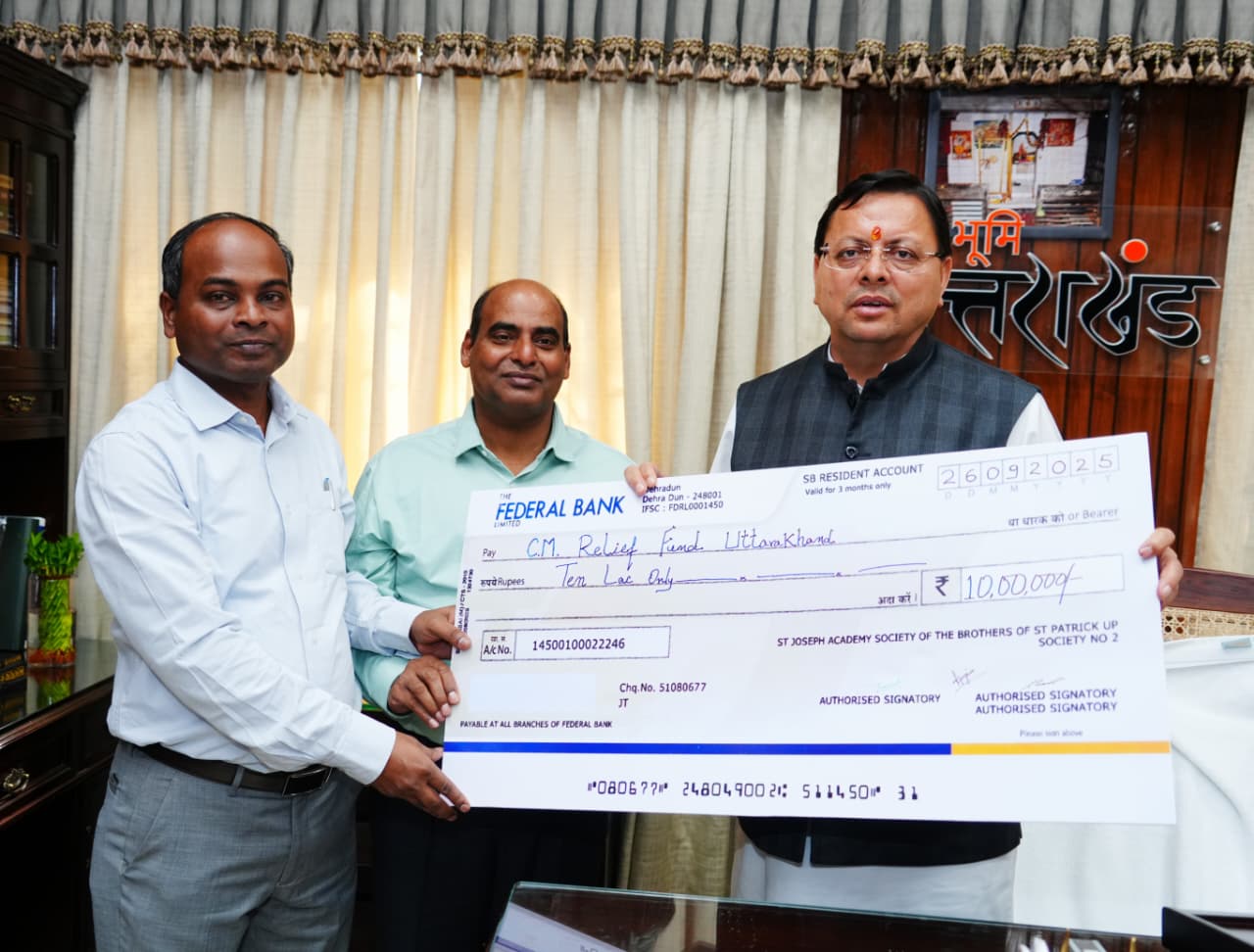 मुख्यमंत्री ने सेंट जोसेफ अकादमी का आभार व्यक्त करते हुए कहा कि यह योगदान आपदा प्रभावितों की सहायता एवं पुनर्निर्माण कार्यों में उपयोगी सिद्ध होगा। उन्होंने कहा कि राज्य सरकार प्रत्येक आपदा प्रभावित व्यक्ति के साथ खड़ी है। इस अवसर पर ब्रदर जोसेफ एम. जोसेफ, ब्रदर एस्टिनस कुजूर, एस. के. नैथानी, सचिन अग्रवाल, भवनेश नेगी मौजूद रहे।