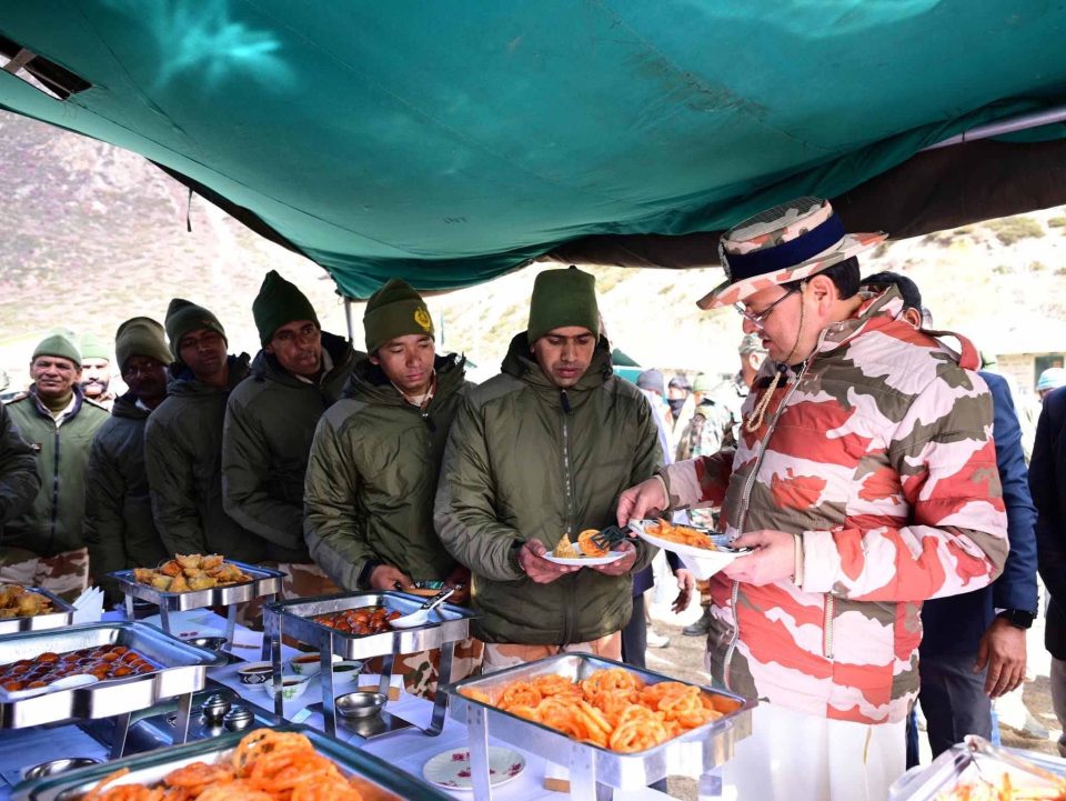 पिथौरागढ़। मुख्यमंत्री पुष्कर सिंह धामी अपने दो दिवसीय दौरे पर पिथौरागढ़ में हैं। सीएम धामी ने बुधवार को मुनस्यारी का दौरा किया, जहां स्थानीय लोगों ने उनका स्वागत किया। इसके बाद उन्होंने सीमावर्ती क्षेत्र मिलम में आईटीबीपी के जवानों और स्थानीय लोगों के साथ बातचीत की। सीएम धामी ने आईटीबीपी कैंप में जवानों को जलेबी परोसी और उनसे बातचीत भी की। सीएम धामी ने आईटीबीपी जवानों के साथ मिलकर ‘भारत माता की जय’ का नारा भी लगाया।