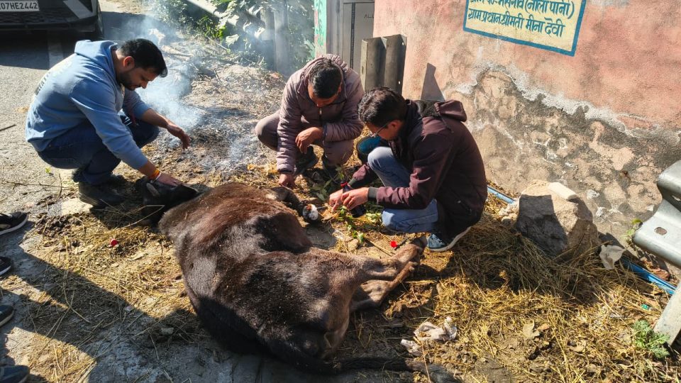 मंगलवार को गौ रक्षा विभाग की टीम ने केदारनाथ हाईवे के नौलापानी में सड़क किनारे घायल अवस्था में पड़ी निराश्रित गाय का ट्रीटमेंट किया। टीम के साथ पशुपालन विभाग और नगर पंचायत तिलवाड़ा ने भी सहयोग किया। टीम ने वाहन की चपेट में आई घायल गाय के आस-पास आग जलाई, जिससे घायल गाय को ठंड से राहत मिले। जिस स्थान पर गाय पड़ी थी, वहां पर ठंड से गाय कांप रही थी। पशु पालन विभाग की टीम की मदद से घायल गाय के पैरों का उपचार कर दवाईयां भी दी गई। इसके बाद तिलवाड़ा नगर पंचायत के वाहन से घायल गाय को गोसदन पहुंचाया गया। विश्व अखाड़ा परिषद (गौ रक्षा विभाग) के प्रदेश अध्यक्ष रोहित डिमरी ने कहा कि केदारनाथ और बद्रीनाथ हाईवे पर सैकड़ों की संख्या में निराश्रित गौवंश घूम रहे हैं। रात के समय शराब के नशे में अज्ञात वाहन चालक इन्हें कुचल रहे हैं, जिससे कभी-कभार इनकी मौत तो कभी ये गंभीर घायल हो रहे हैं। अब तक कई गौवंशों की सड़क हादसों में मौत हो चुकी है। इसके लिए पुलिस प्रशासन को ठोस कदम उठाने की जरूरत है। रात के समय नशे में वाहन चलाने वाले चालकों के विरूद्ध कड़ी कार्यवाही अमल में लाई जानी जरूरी है। साथ ही सीसीटीवी कैमरों की मदद से तेज वाहन चलाने वाले अज्ञात वाहन चालकों पर नजर रखी जाए। उन्होंने कहा कि सड़क हादसों में निराश्रित गौवंश अपनी जान गंवा रहे हैं और सरकार के साथ ही जिला प्रशासन चैन की नींद सोया हुआ है। उन्होंने कहा कि निराश्रित गौंवश के संरक्षण को लेकर ठोस प्रयास करने की जरूरत है। तभी इनके जीवन को बचाया जा सकता है। इस मौके पर गौ रक्षा विभाग के जिला उपाध्यक्ष दीपक नौटियाल, सचिव अंकित राणा, संदीप कोठारी, रिंकू भट्ट, पशु पालन विभाग से राय सिंह रावत, अजय भट्ट, नगर पंचायत से महावीर भंडारी आदि मौजूद थे।