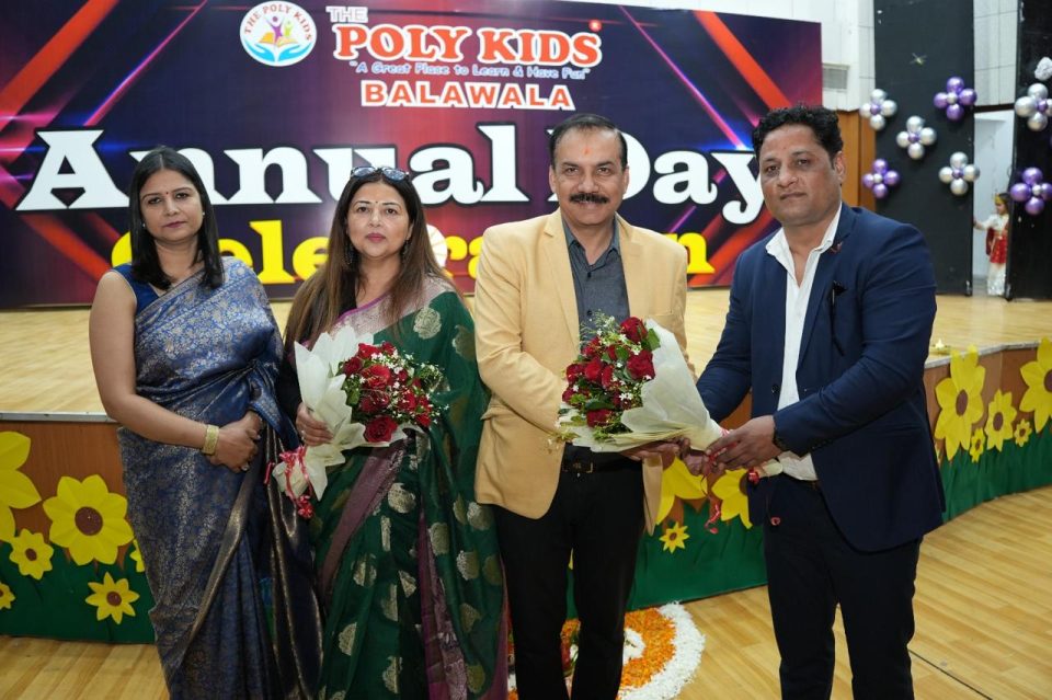 बलावाला शाखा की निदेशक शालिनी नेगी ने सभी गणमान्य व्यक्तियों का स्वागत किया। सभा को संबोधित करते हुए द पॉली किड्स के चेयरमैन कैप्टन मुकुल महेंद्रू ने स्कूल की रचनात्मकता, शिक्षा और विकास की सराहना की। वार्षिक समारोह में संस्थापक निदेशक रंजना महेंद्रू, निदेशक रोहित सिंह, नंदिता सिंह, सिद्धार्थ चंदोला, आलोक छेत्री, वंदना छेत्री, शिप्रा आनंद, कार्यक्रम समन्वयक दीप्ति सेठी, प्रधानाध्यापिका पारुल, पूनम निगम और संगीता मल्होत्रा और द पॉली किड्स के सभी कर्मचारी उपस्थित थे।